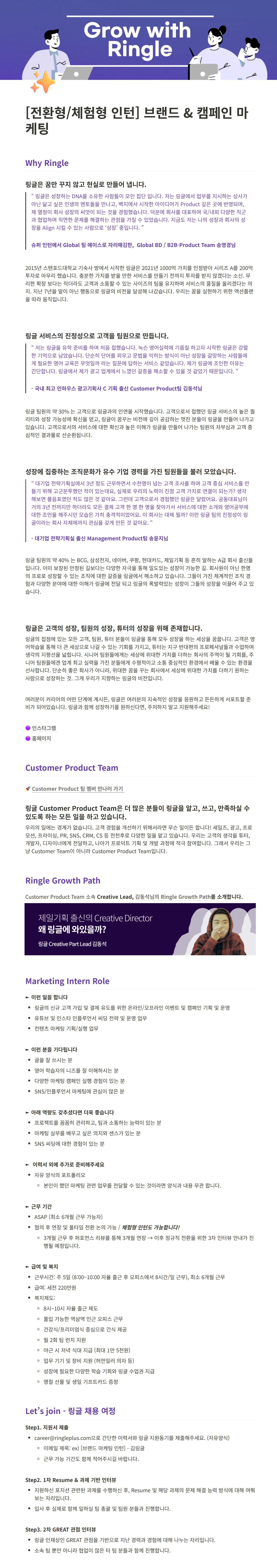 [화상영어 링글] 브랜드 & 캠페인 마케팅 인턴 모집 전환형/체험형 인턴