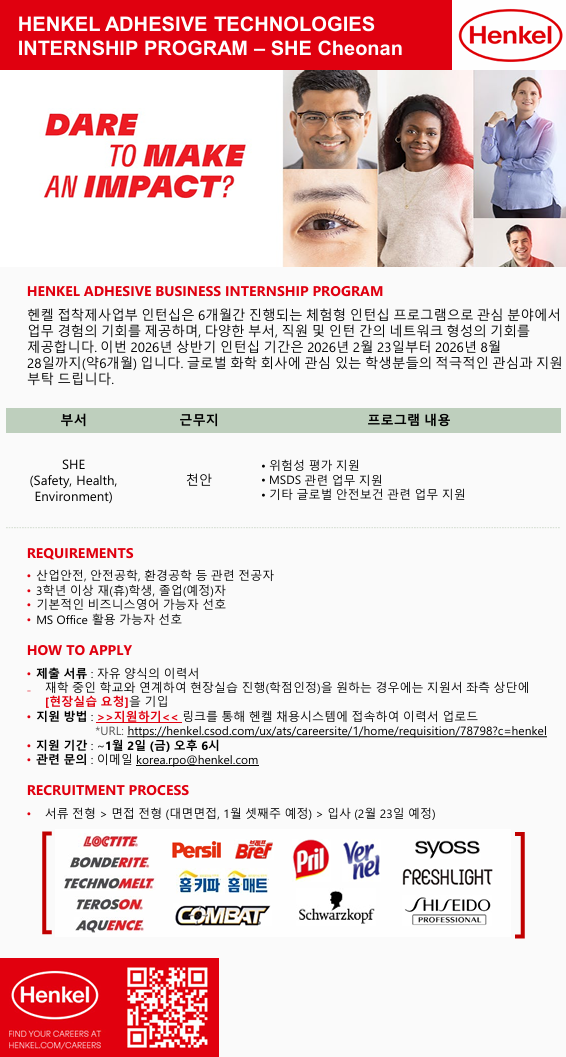 At Henkel, you can build on a strong legacy and leading positions in both industrial and consumer businesses to reimagine and improve life every day. If you love challenging the status quo, join our community of over 47.000 pioneers around the globe. Our teams at Henkel Adhesive Technologies help to transform entire industries and provide our customers with a competitive advantage through adhesives, sealants and functional coatings. With our trusted brands, our cutting-edge technologies and our disruptive solutions, you will have countless opportunities to explore new paths and develop your skills. Grow within our future-led businesses, our diverse and vibrant culture and find a place where you simply belong. All to leave your mark for more sustainable growth.