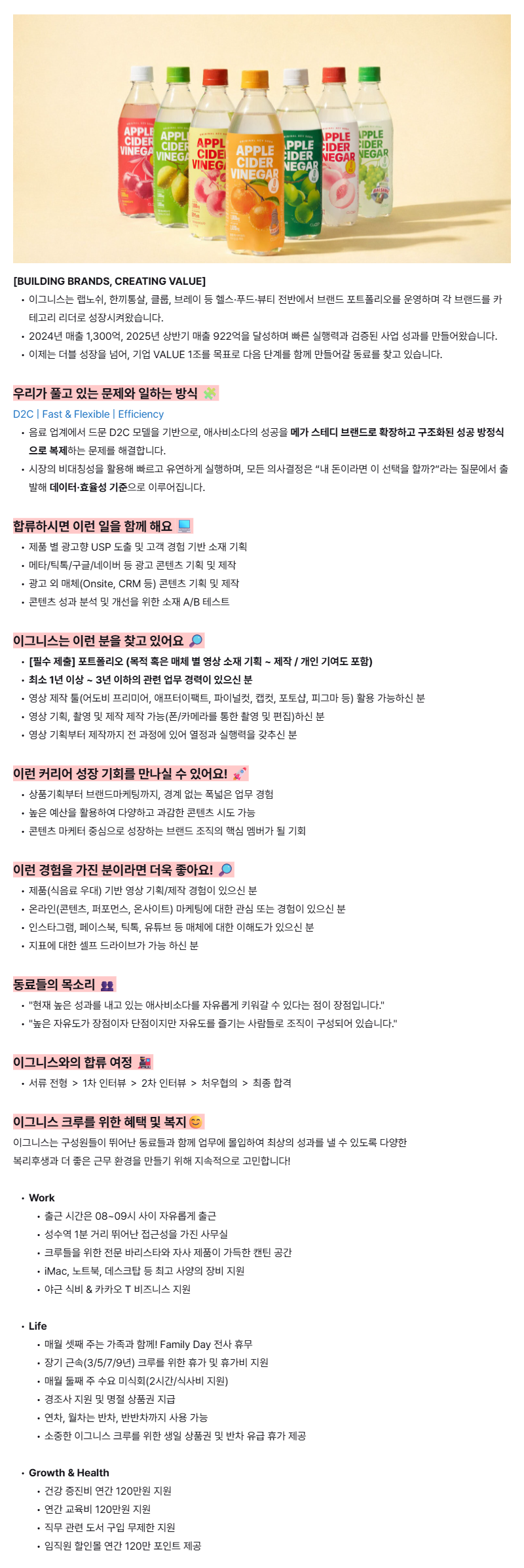 - 제품(식음료 우대) 기반 영상 기획/제작 경험이 있으신 분