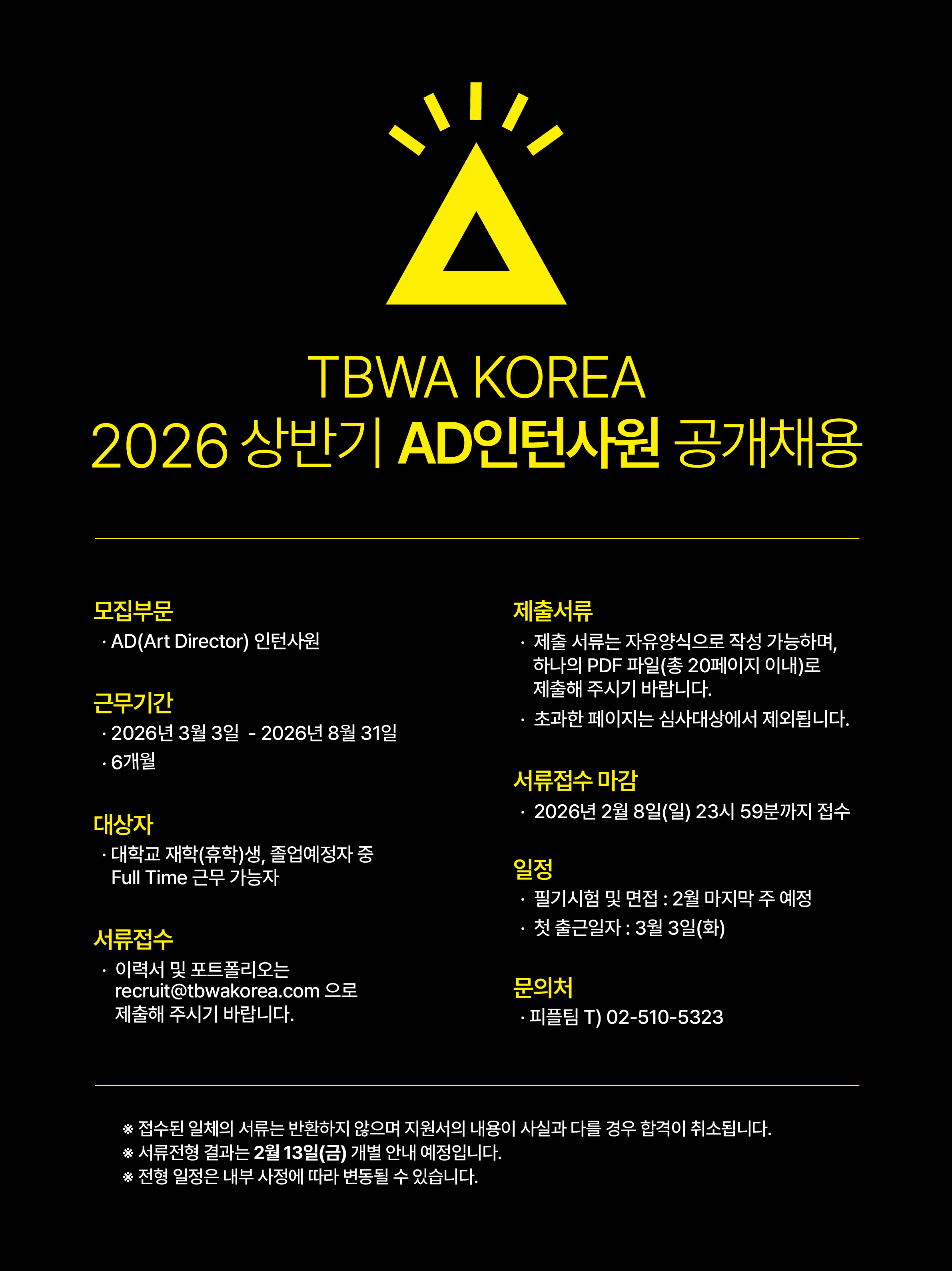 - 이력서 및 포트폴리오는 recruit@tbwakorea.com으로 제출해 주시기 바랍니다.