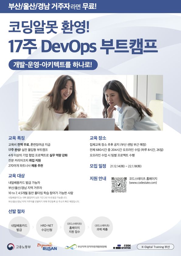 📣 부산, 울산, 경남 지역 거주생을 대상으로 하는 DevOps 부트캠프 1기 수강생을 모집합니다.📣