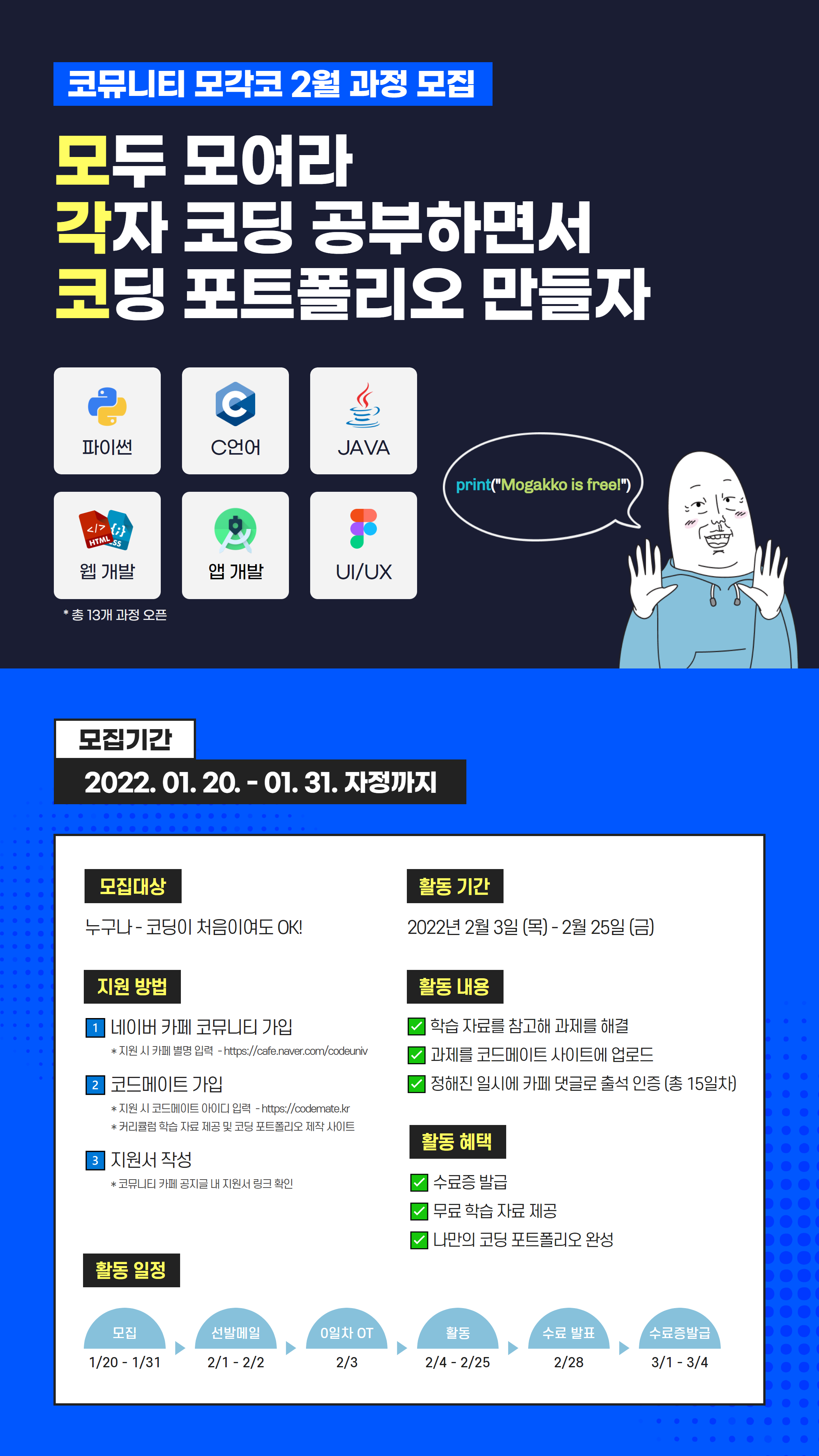 무료 온라인 코딩 대외활동, 코뮤니티 모각코에서 새로운 참가자를 모집합니다🔥🔥