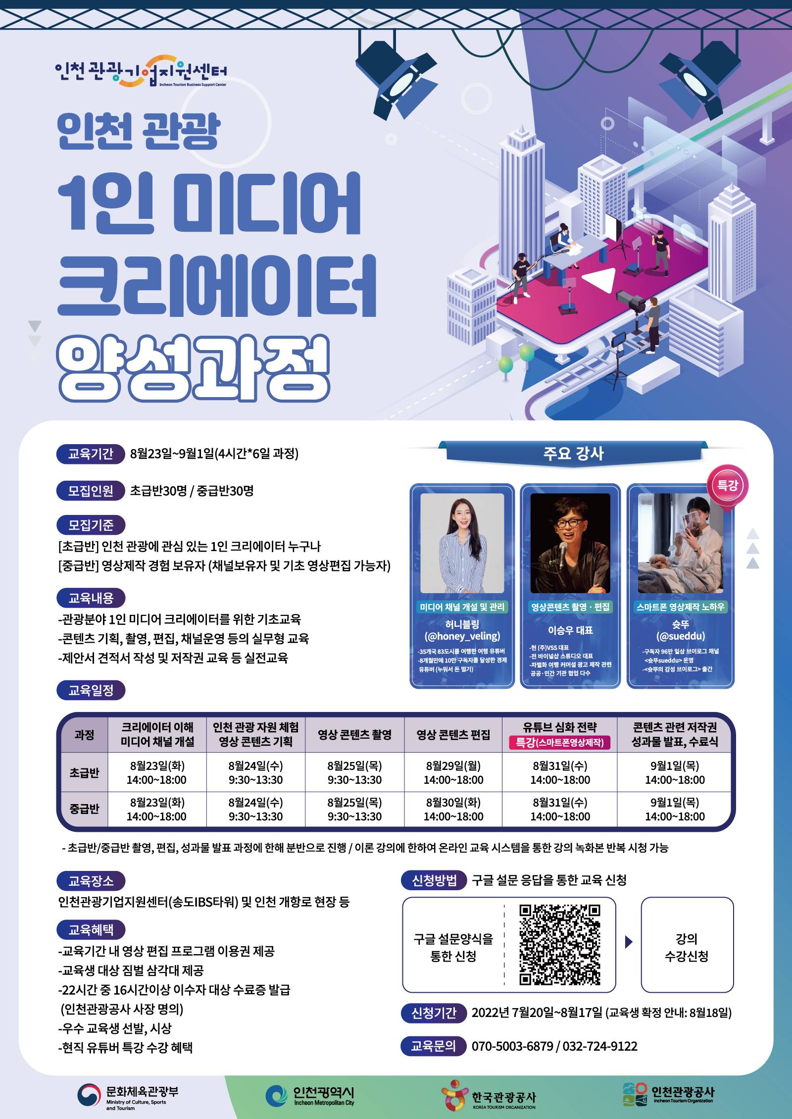 인천 관광에 관심 있는 1인 크리에이터 과정 교육생을 모집합니다.