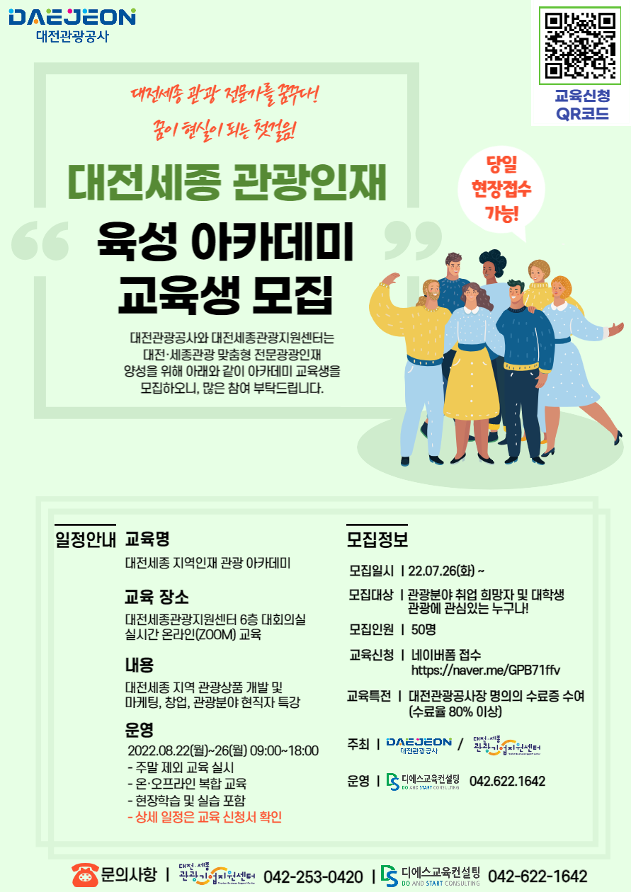 - 교육 80% 이상 참여 시 대전관광공사장 명의의 수료증 발급
