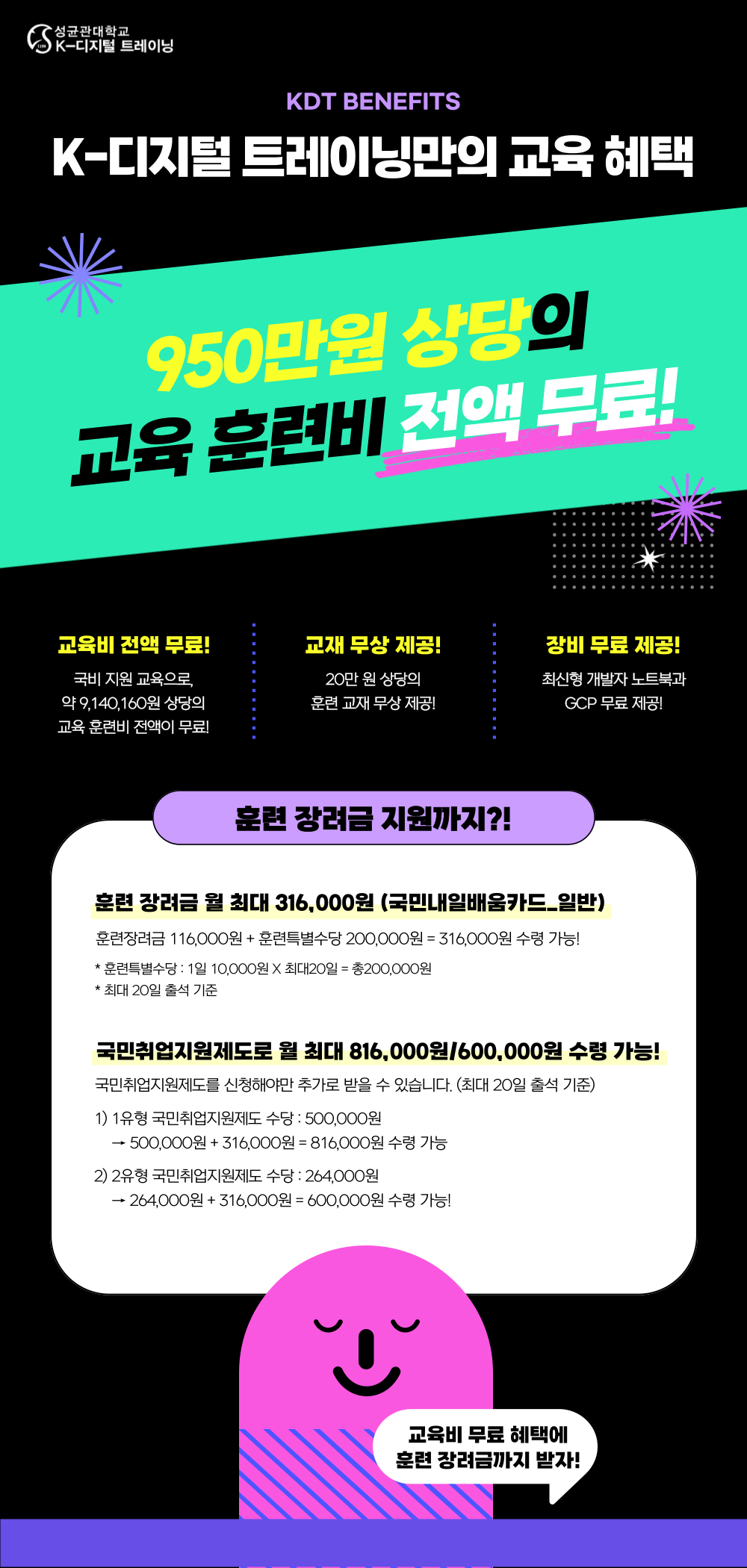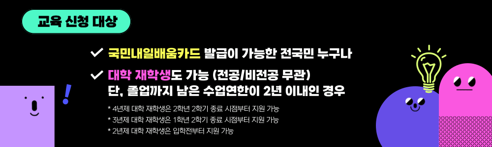 내일배움카드 발급이 가능한 누구나 / 비전공자&전공자 가능 / 대학생 3학년, 4학년, 휴학생, 졸업생, 대학원생 가능