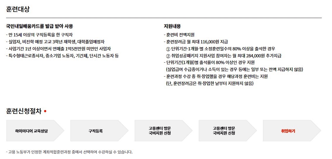 - 국민내일배움카드를 발급 받아 직업 훈련에 참여를 희망하는 국민 누구나