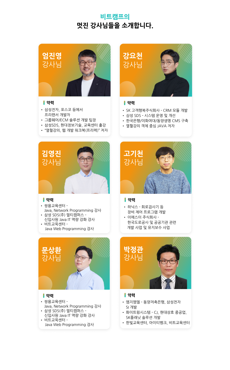 비트캠프와 함께 20여년 간 직장인이 아닌 개발인을 양성하신 강사님들도 많이 계신데요?