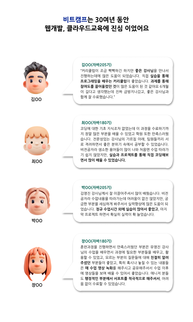 비트캠프 웹개발 과정을 들으셨던 선배님들의 솔직한 후기 입니다.