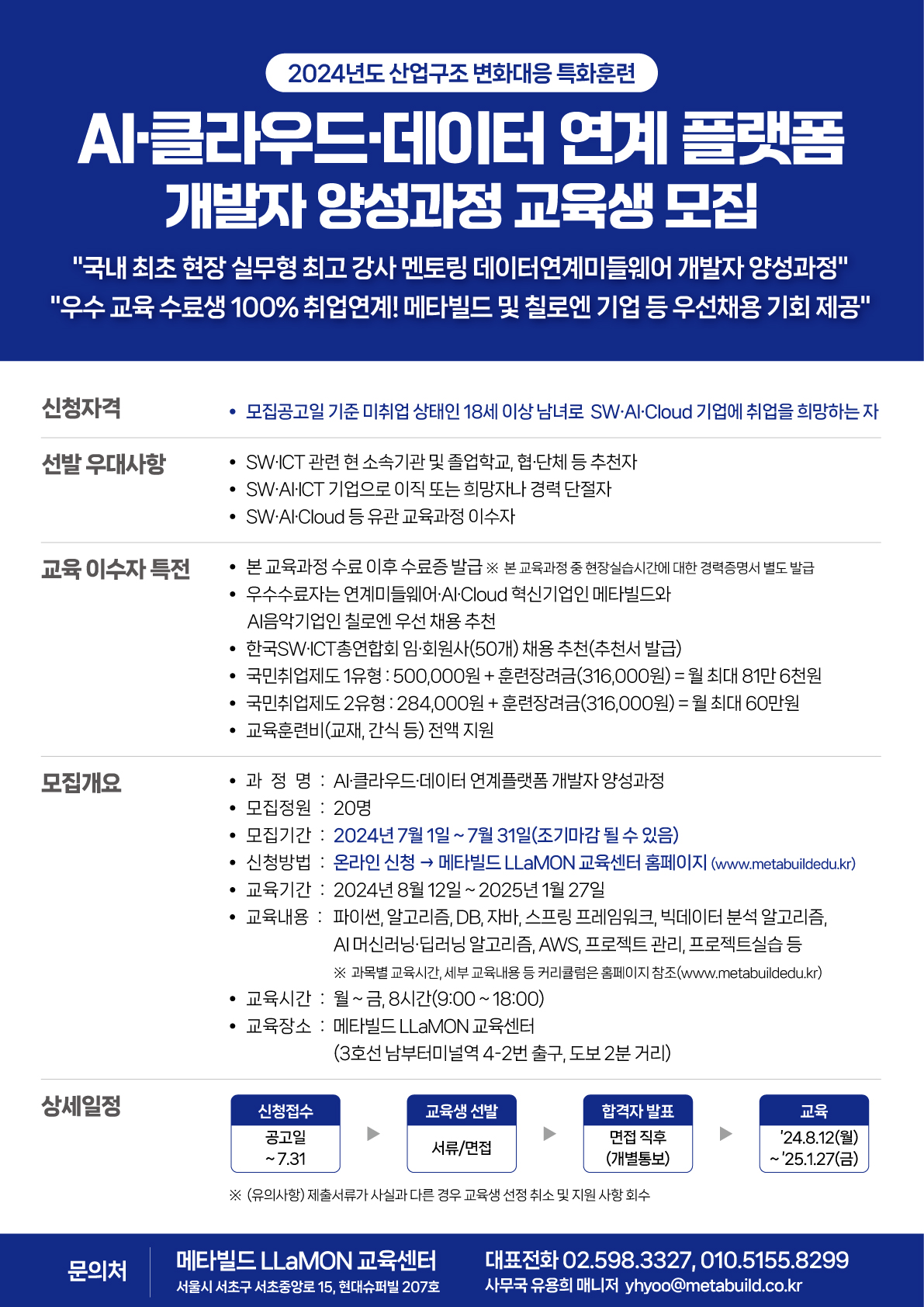 모집공고일 기준 미취업 상태인 18세 이상 남녀로 SW·AI·Cloud 기업에 취업을 희망하는 자