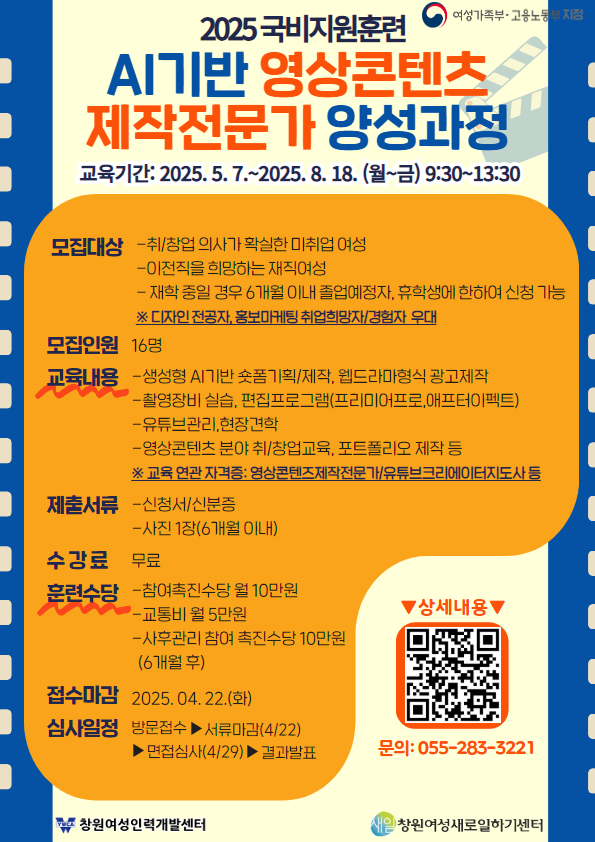 ※ 주소: 성산구 대정로 20번길 11 여성회관창원관 2층 여성새로일하기센터