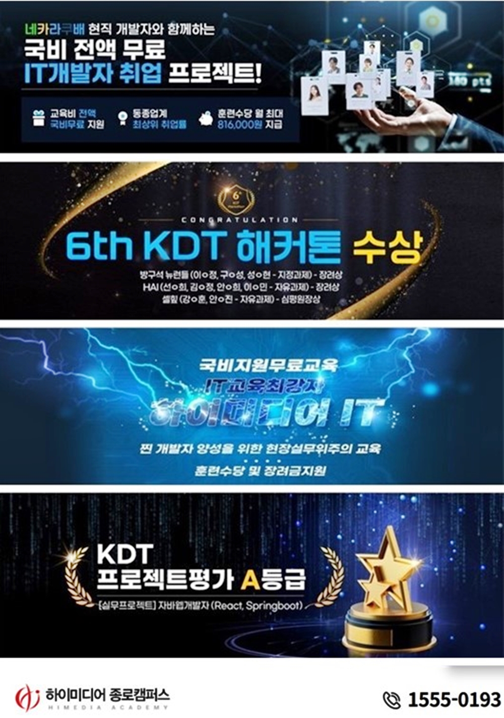 하이미디어아카데미는 20년 이상의 오랜 시간동안 IT국비지원관련 교육을 진행하고 있고,