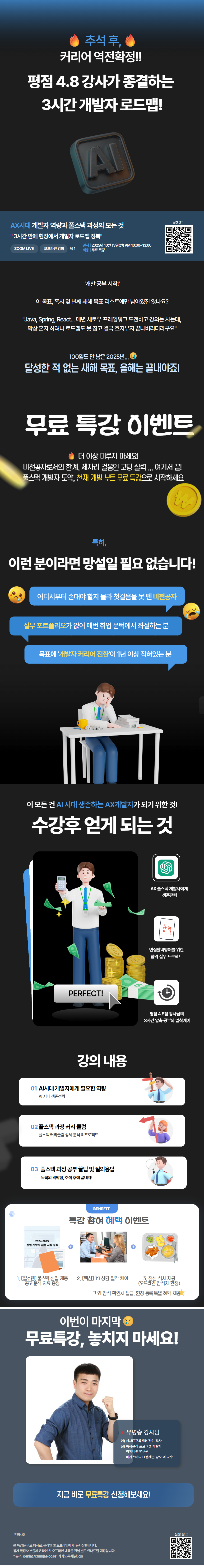 이번 특강에서는 시대가 원하는 개발자 역량과, 실제 풀스택 과정의 핵심 구조와 수업 방식을 3시간 안에 이해할 수 있습니다.