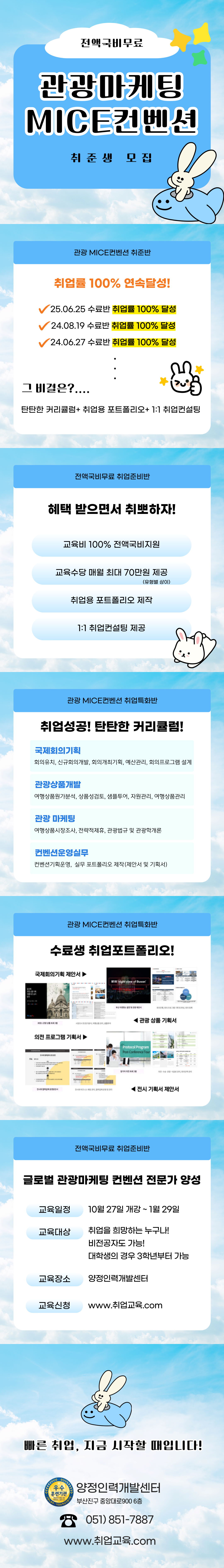 🚨이제는, 관광·MICE컨벤션 전문가로 양정인력개발센터에서 시작하세요!