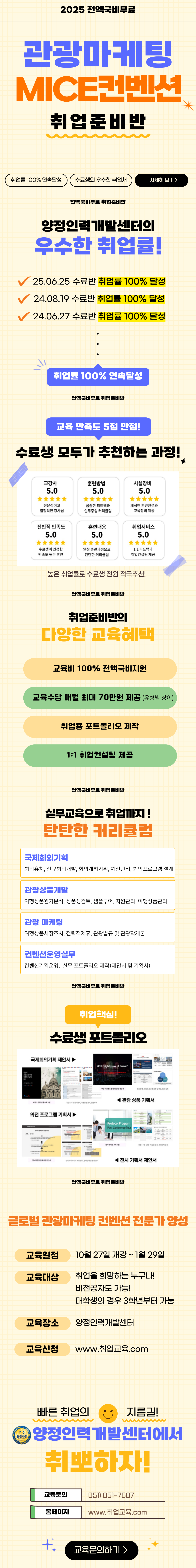 🚨이제는, 관광·MICE컨벤션 전문가로 양정인력개발센터에서 시작하세요!