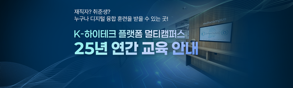 25년 하반기, 멀티캠퍼스 K-하이테크 플랫폼에서 디지털 역량 강화 교육과정이 열리는데요!