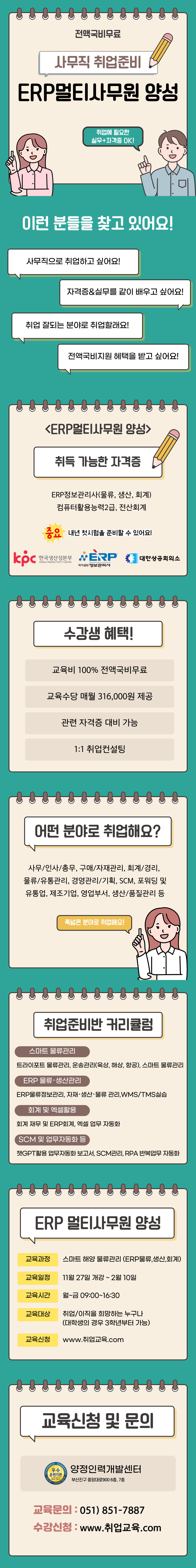 ✅전액국비무료 <ERP멀티사무원 양성과정> 취업준비생을 모집합니다!