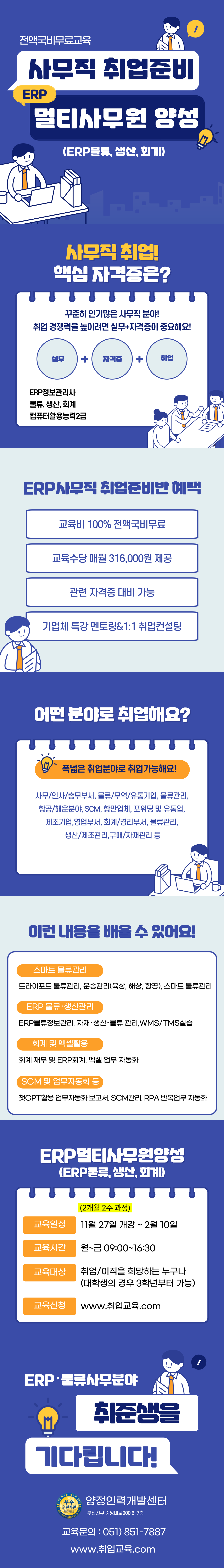 ✅전액국비무료 <ERP멀티사무원 양성과정> 취업준비생을 모집합니다!