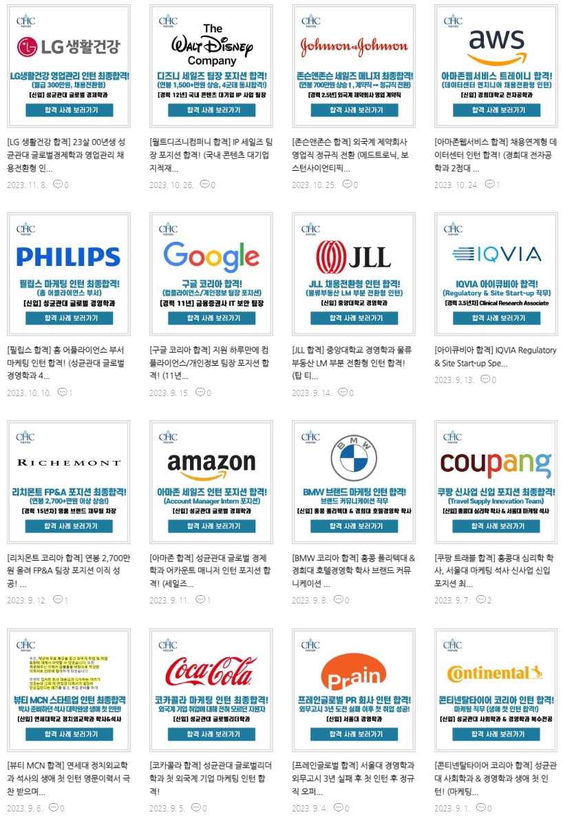 합격 사례, 취업 방법 등 취업에 도움이 될 정보를