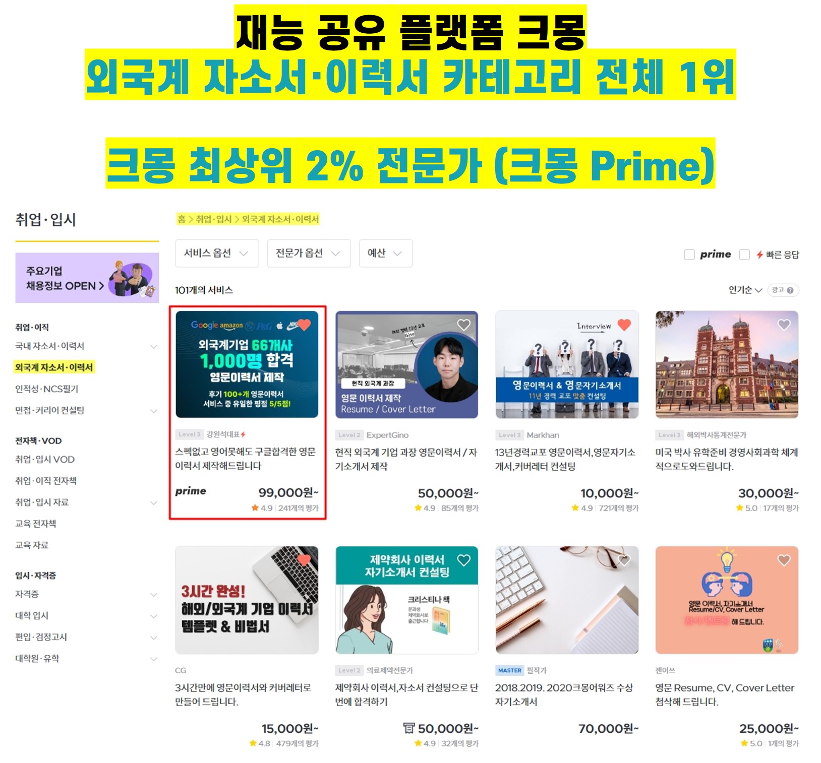 "학교 취업센터 영문이력서 교정 서비스보다 낫습니다"