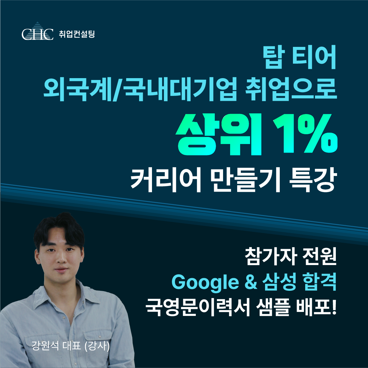 [구글/삼성합격 이력서 증정] 대기업/외국계 취업 특강