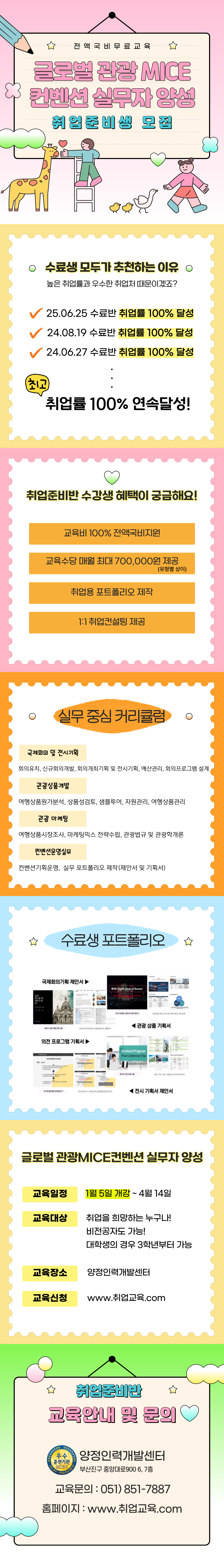 🚨이제는, 관광·MICE컨벤션 전문가로 양정인력개발센터에서 시작하세요!