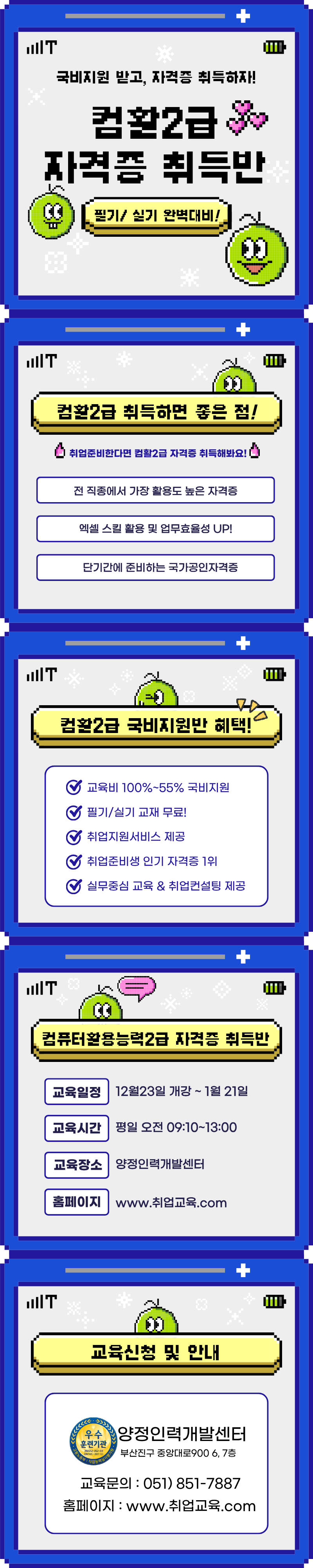 [국비지원/20일 완성] 컴퓨터활용능력2급 자격증 단기 대비반(필기/실기)
