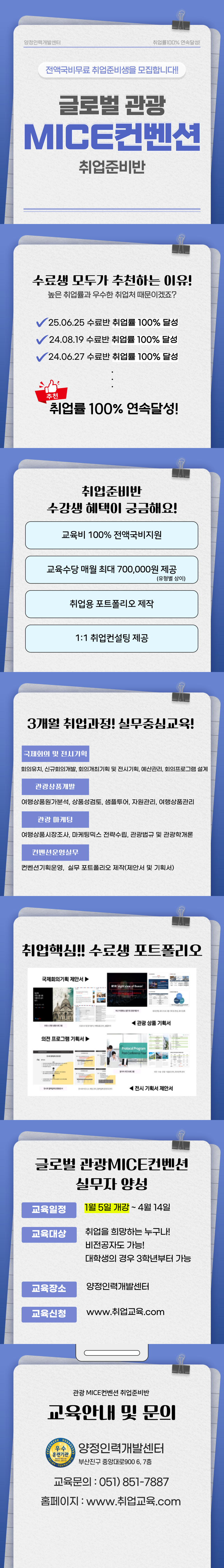 🚨이제는, 관광·MICE컨벤션 전문가로 양정인력개발센터에서 시작하세요!