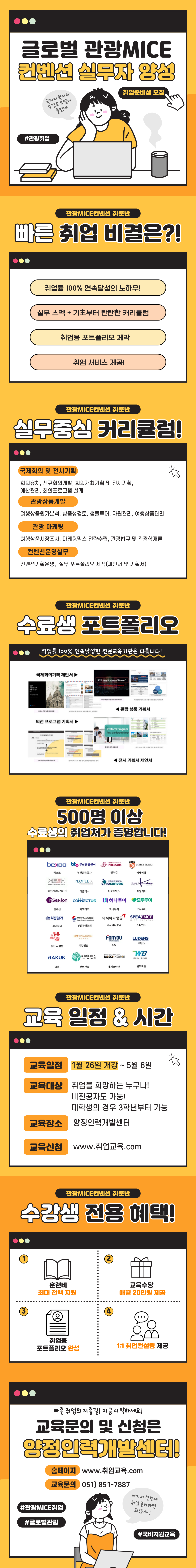 🚨이제는, 관광·MICE컨벤션 전문가로 양정인력개발센터에서 시작하세요!