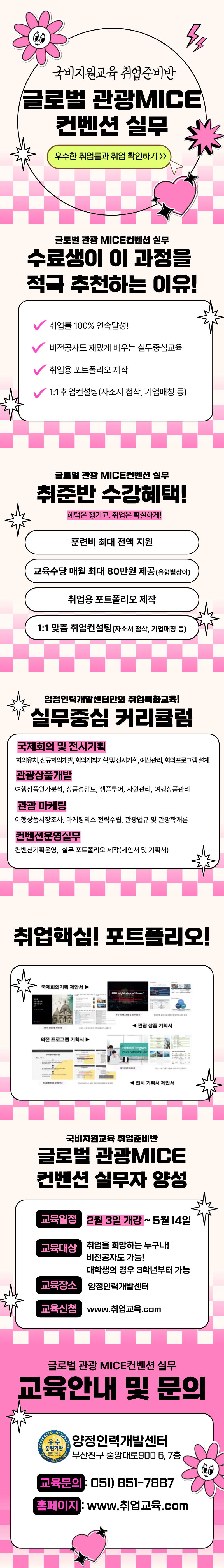 🚨이제는, 관광·MICE컨벤션 전문가로 양정인력개발센터에서 시작하세요!