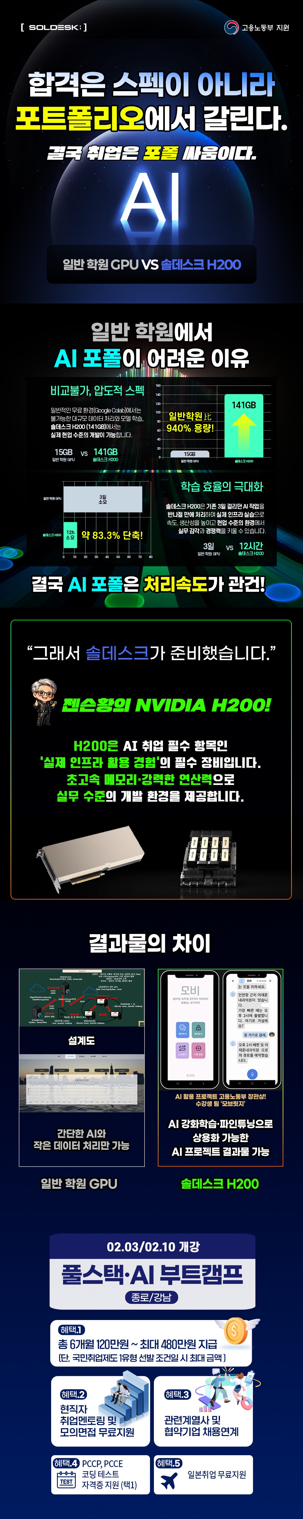 국내 최고 사양인 NVIDIA H200 GPU를 활용하여 이론과 실무의 격차를 완벽히 해소하는 차별화된 커리큘럼을 제안합니다.
