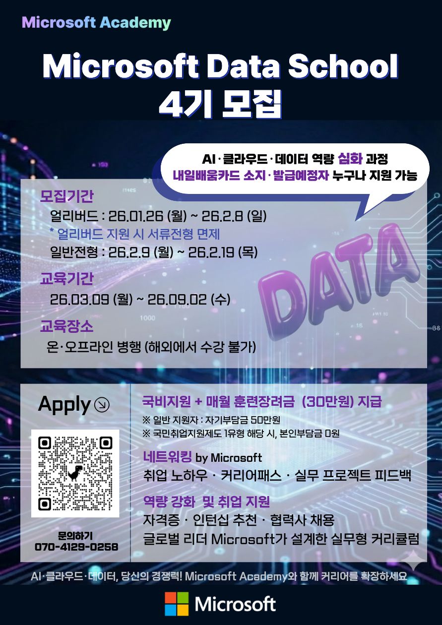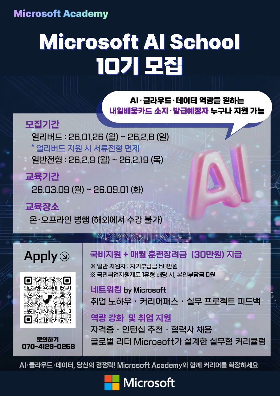 ✨ AI·클라우드·데이터 역량을 한 단계 높이고 싶은 취준생을 위한 Microsoft Academy 심화 교육 프로그램이 열립니다!