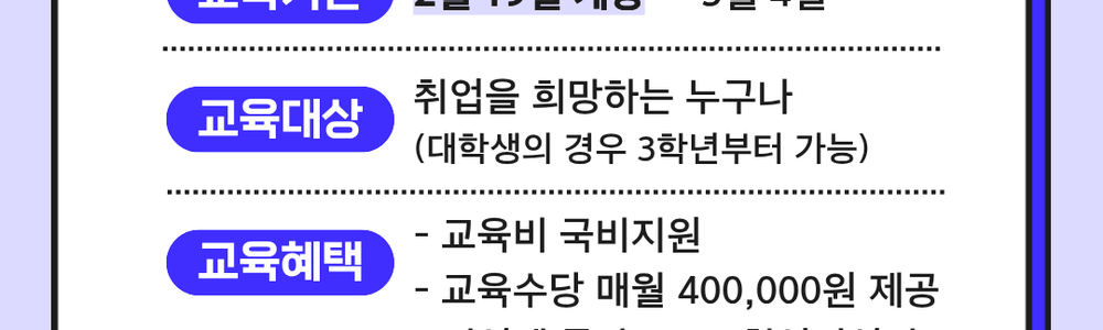 - 교육기간 : 2월19일 개강 ~ 5월 4일