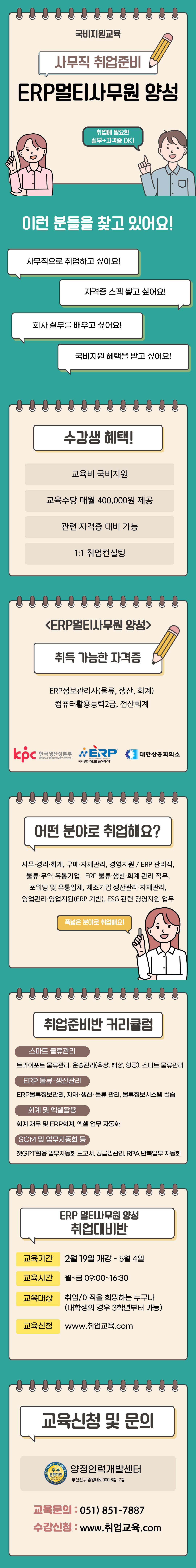 - 과정명 : 스마트 해양 물류관리 실무(ERP멀티사무원 양성)