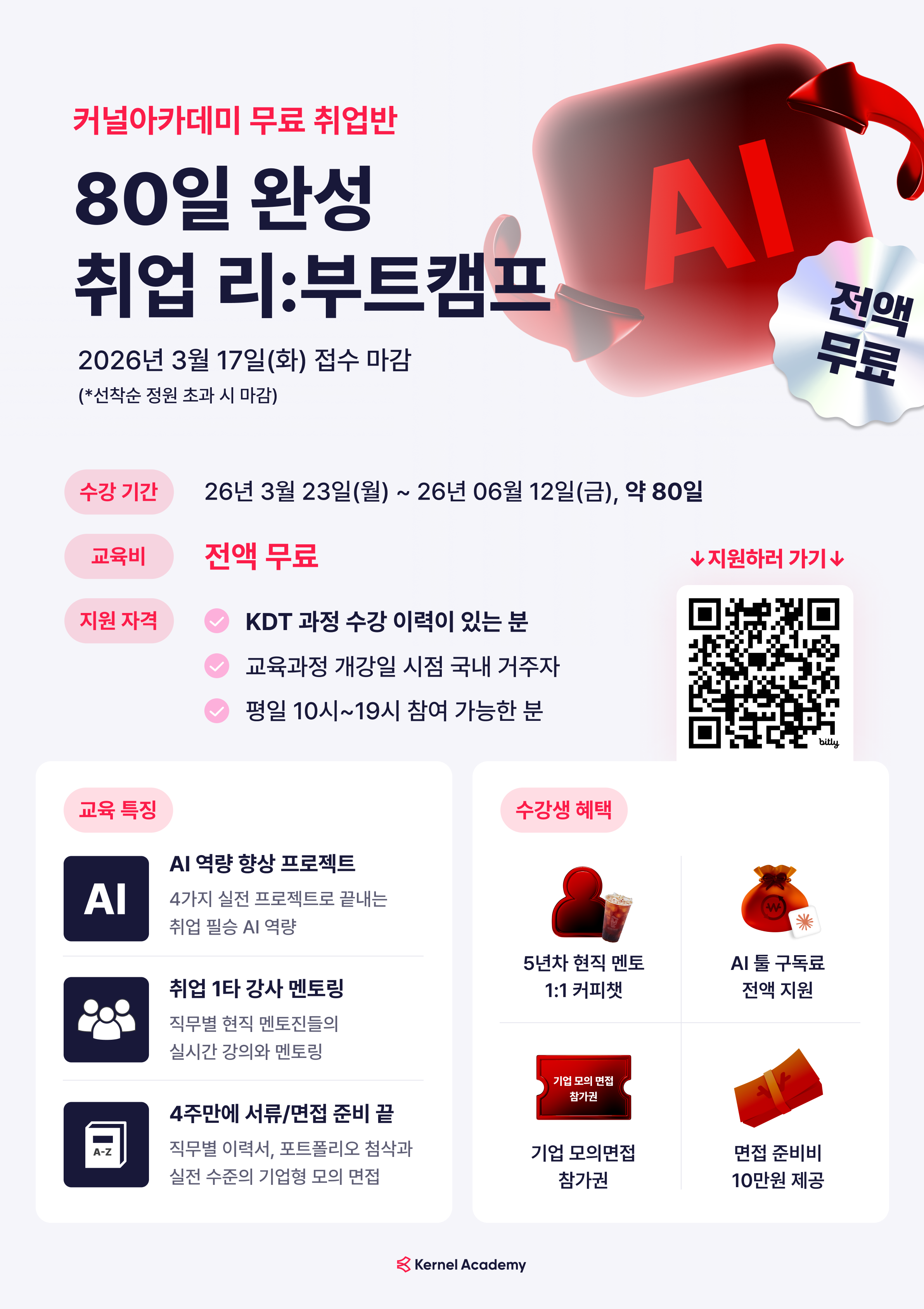 커널아카데미가 여러분의 취업 성공을 위해 전액 무료, 역대급 혜택으로 지원합니다!