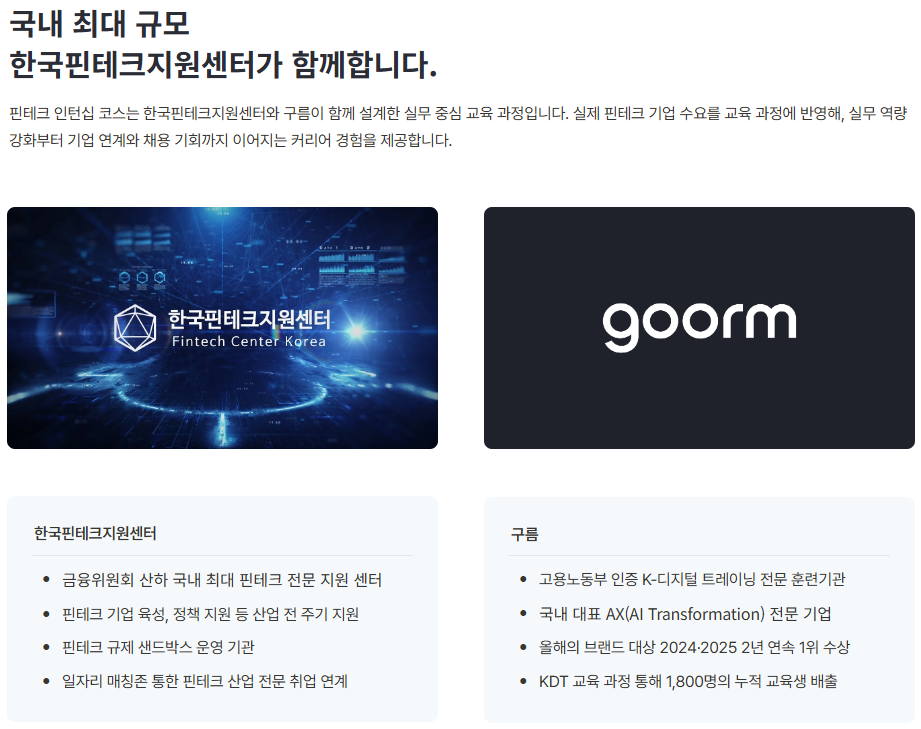 실제 핀테크 기업에서의 실무 경험 기회.