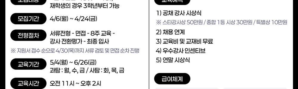 교육 수료 후 강사로 데뷔 할 수 있는 채용연계형 사과탐 교육 프로그램입니다.